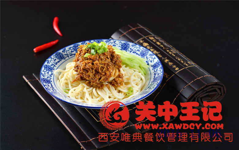 炸醬面是漢族面食,流行于西安、咸陽(yáng)、寶雞等北方地區(qū),由肉末,蔥,姜,蒜十幾種配料炒制而成。