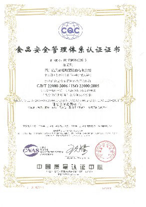 食品安全管理體系認證證書